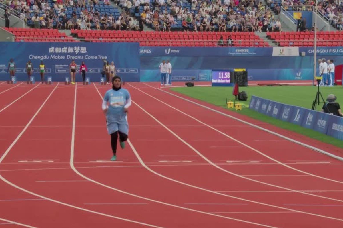 Nasra Abukar Ali, 20, took 21.81 seconds to finish the 100m race, almost double the time it took the race winner at the World University Games in China on Tuesday.